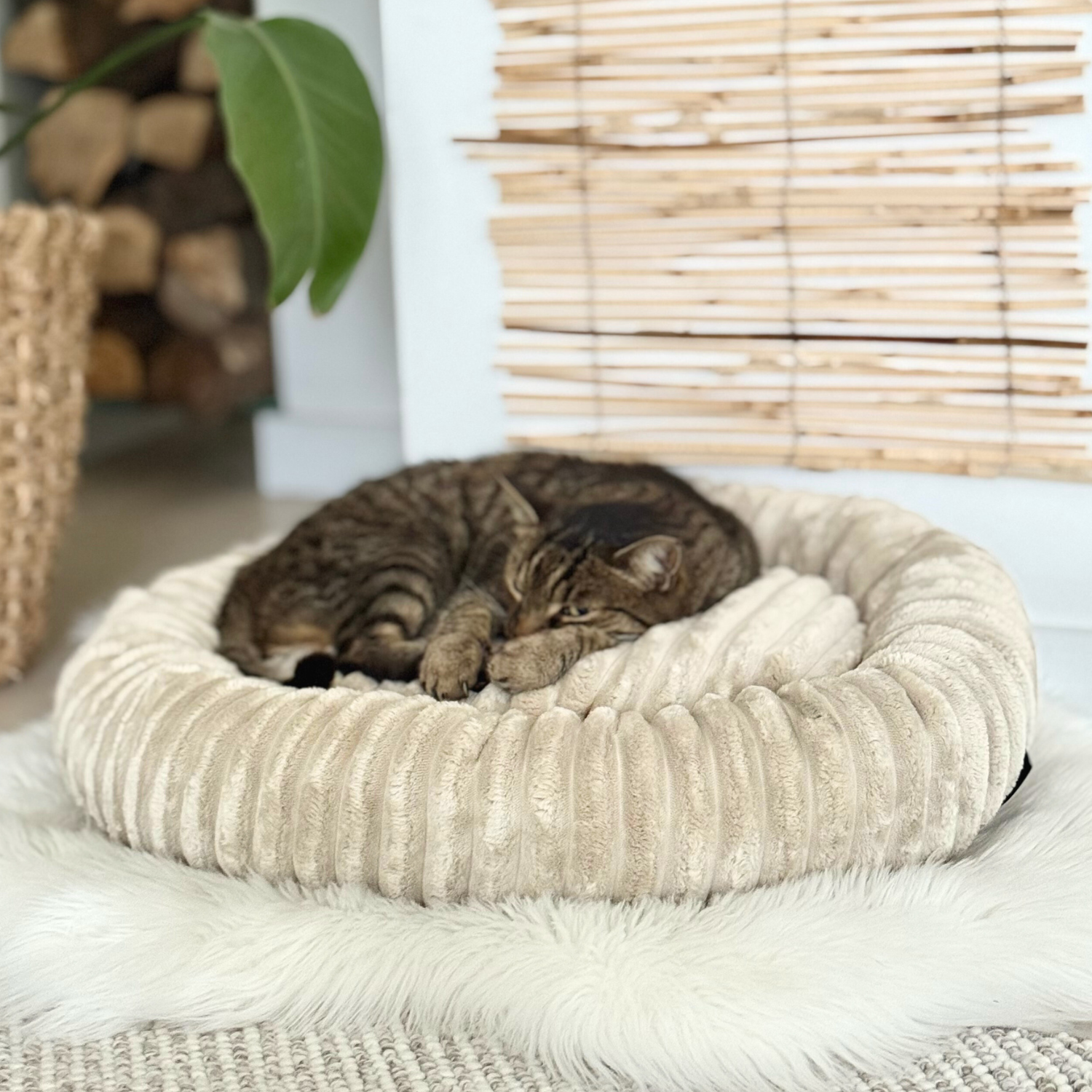 Das Katzenbett LUNA ist ein Synonym für puren Komfort! Der zarte Stoff mit Streifen fühlt sich nicht nur angenehm an, sondern ist auch besonders warm, was ihn zur perfekten Wahl für kalte Tage macht. Die flauschige Struktur des Katzenbettes umhüllt Ihr Haustier und sorgt für einen bequemen und gesunden Schlaf.